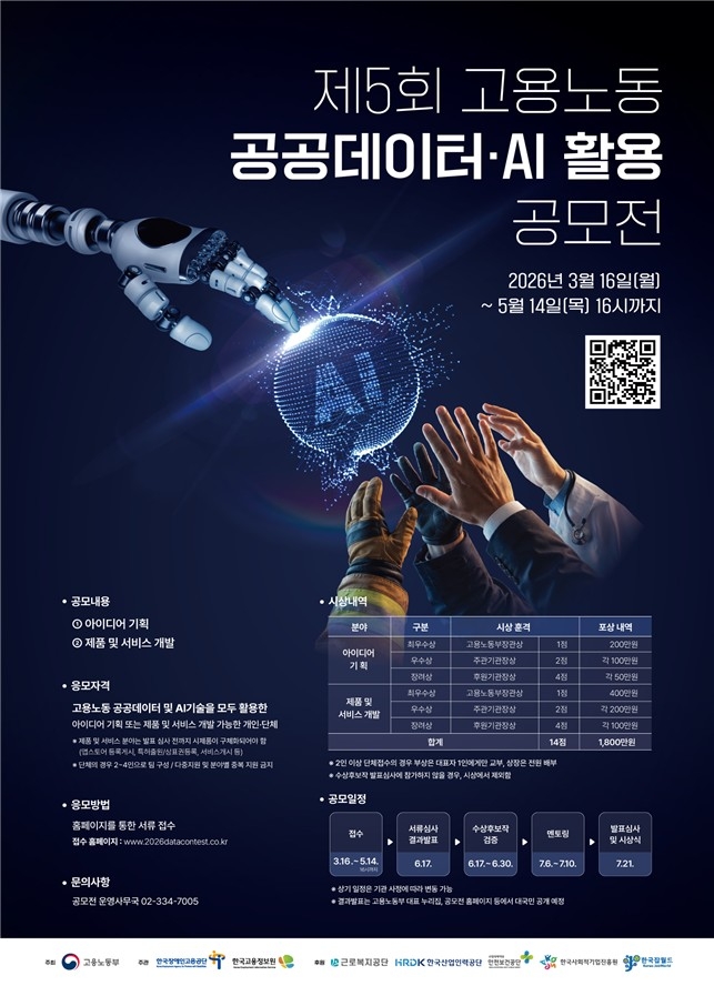 [교외] [고용노동부] 제5회 고용노동 공공데이터·AI 활용 공모전 안내(3/16월~5/14목 16:00)
